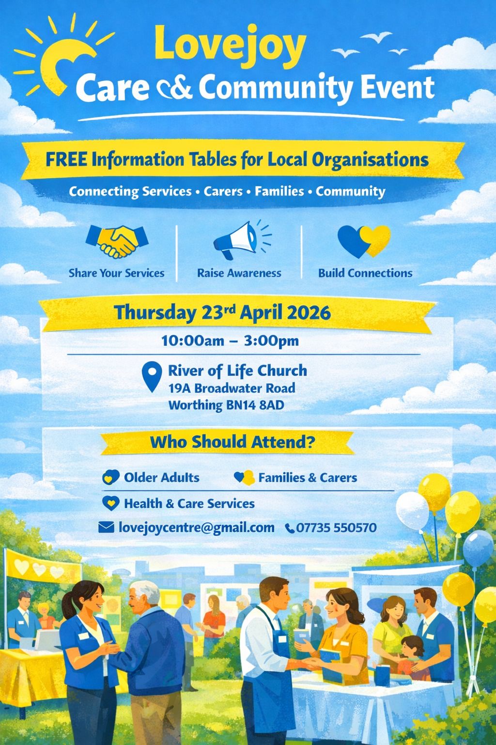 The Lovejoy Centre, in collaboration with River of Life Church, are hosting a care and community event for local organisations to showcase their work to the public.