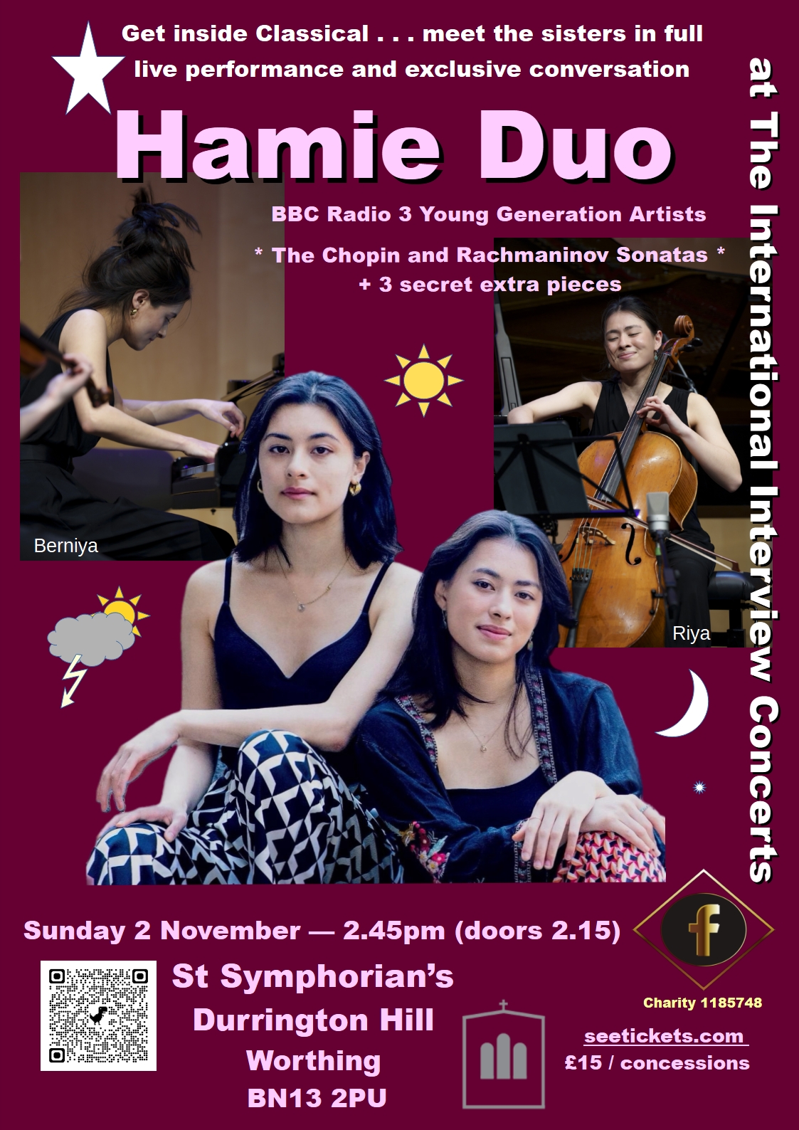 Sisters Berniya and Riya Hamie are among the latest elite BBC Radio 3 New Generation Artists, as the founding members of Astatine Trio. Here, they appear in their other virtuoso guise, performing irresistibly compelling superb piano and soulful cello as Hamie Duo.