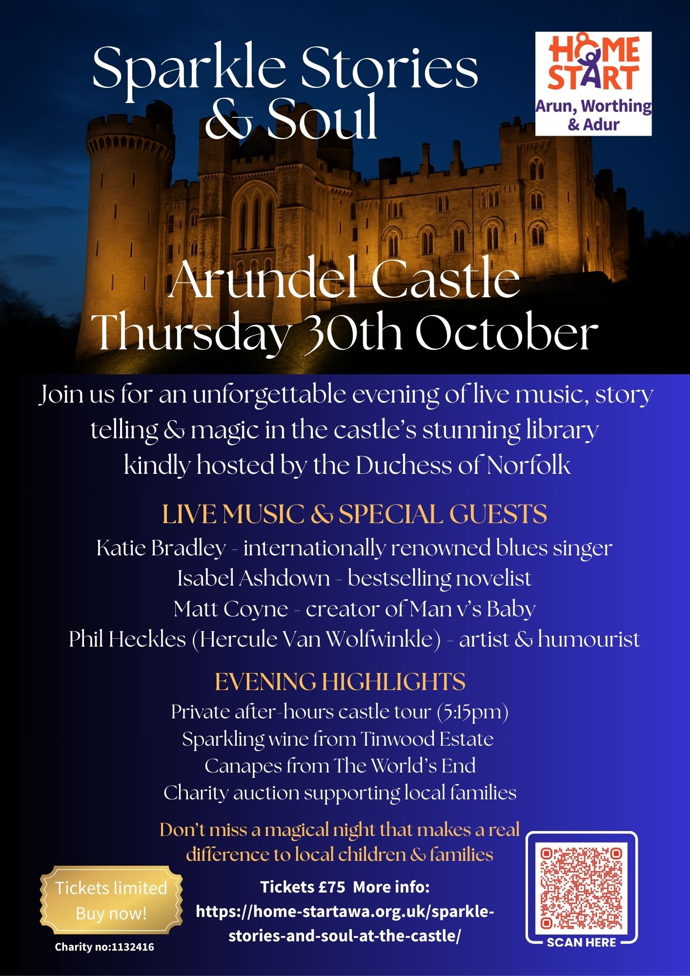 An exclusive evening of music, stories and magic in Arundel Castle's magnificent library, hosted by Her Grace, The Duchess of Norfolk. To raise vital funds for local vulnerable children & their families - local charity Home-Start Arun, Worthing & Adur.