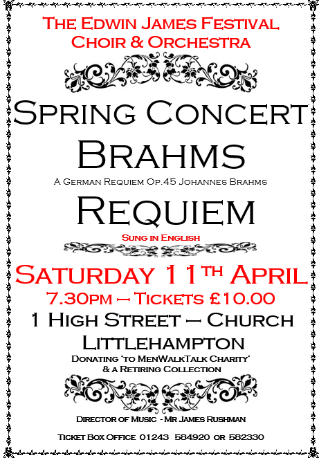 Concert features BRAHM’S REQUIEM and is a fundraiser for the charity “MenWalkTalk".
