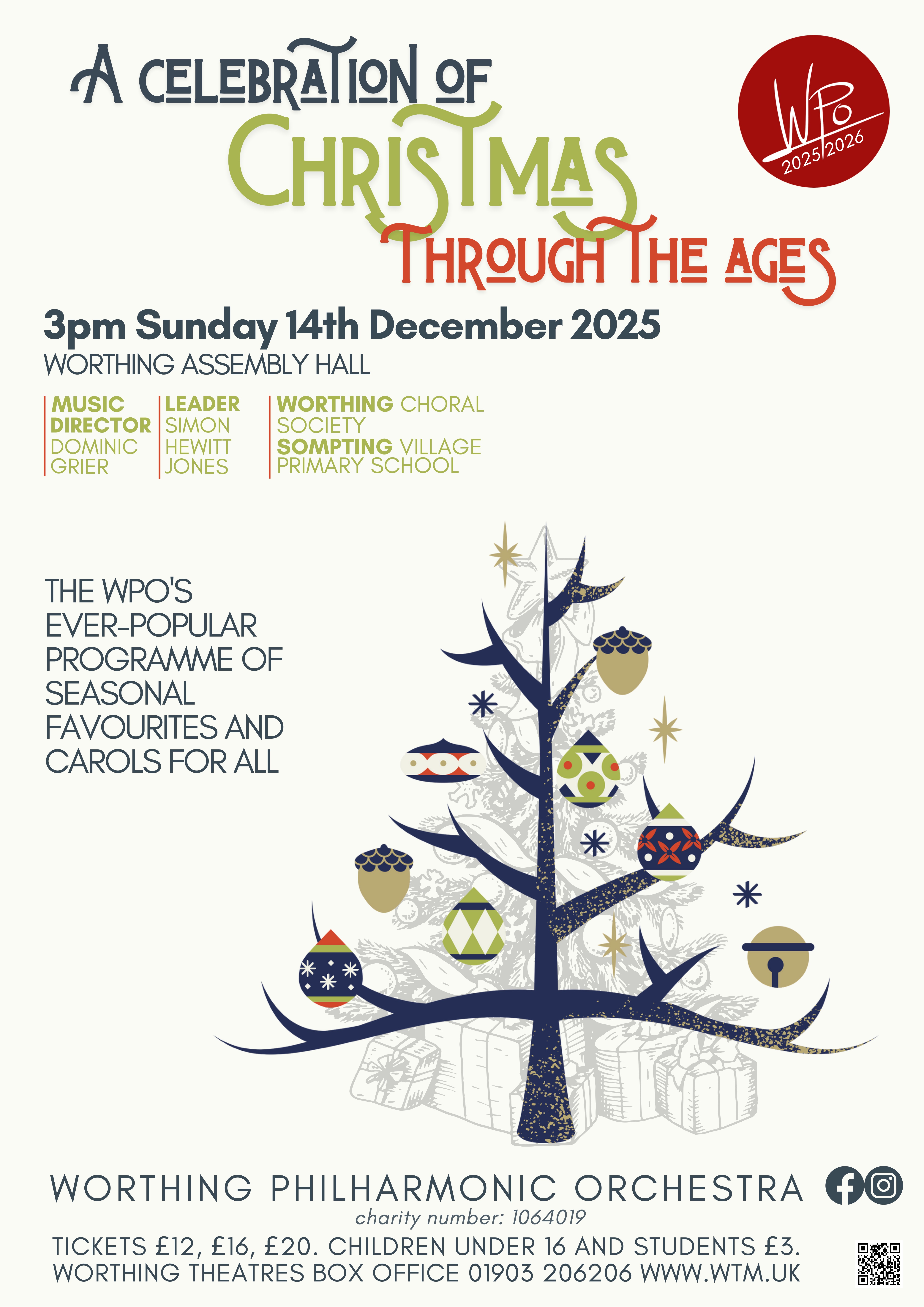 The WPO offers its hugely popular annual Christmas Concert, including favourite carols, popular Christmas music and festive fun for all the family! The theme for this year, ‘Christmas Through the Ages’, takes you on an evocative journey across the musical and cultural landscapes of Christmas past and present. Join us to enjoy some familiar seasonal music and discover some hidden gems along the way, with: